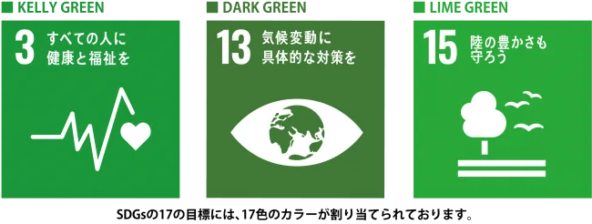 SDGsでは17の目標(ゴール)が設定されていますが、SDGsを「知ってもらう」という観点からチームカラーのグリーンに合わせ3つのゴールに着目し、それを「DIME GREEN SDGs」と名付けるとともに、TOKYO DIMEとしてのSDGs推進活動の指針であると定義付け。ここでは、分かり易さを重視するために3つを掲げますが、TOKYO DIMEとして17のゴールは等しく大切なゴールであることには変わらず、DIME GREEN SDGsの活動は全てのゴールに関連します。17のゴールにはそれぞれ17色のカラーが割り当てられており、まずはそこから多くの方に興味関心を持って頂けるように啓蒙活動を推進していく。