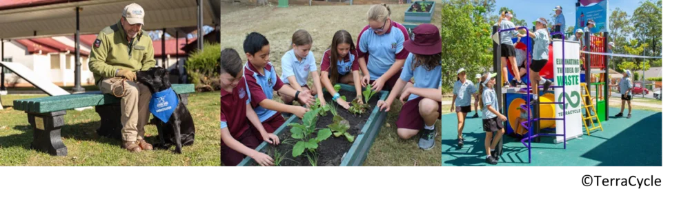 多数の大企業と手を結び、海洋プラスチックなどのリサイクルが難しいものを新製品として世の中に生み出します。 今までテラサイクルが行うリサイクルで生まれた製品は、公園の遊具やベンチ、肥料など様々。
