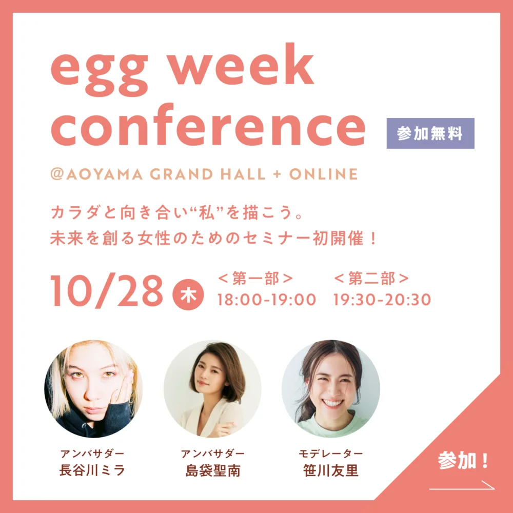 「egg week」初日となる10月28日(木)には、一般向けカンファレンス「egg week カンファレンス」を実施します。参加お申し込みはこちらからチェックしてみてください。