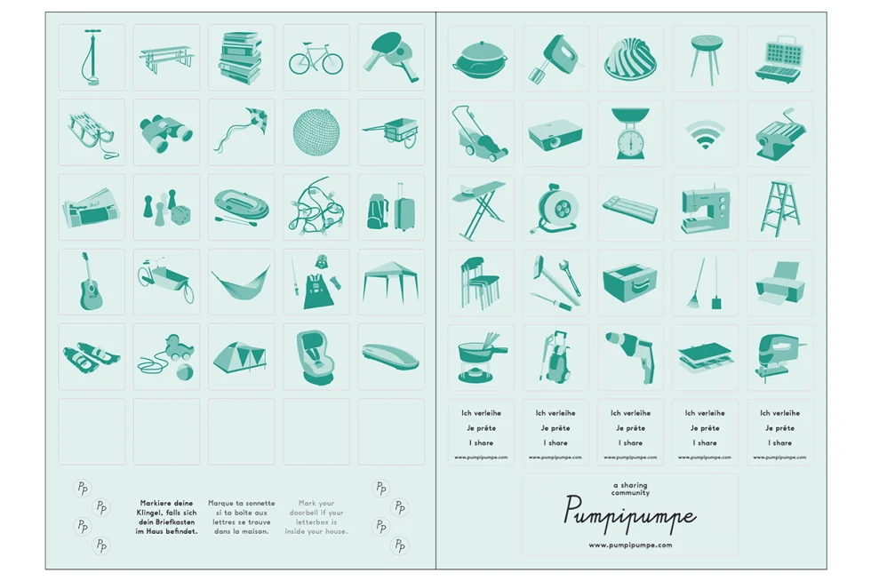 そんな日本の地域コミュニティが衰退していくなか、スイスで話題になっているのが“貸すことができるアイテムのシールをポストに貼る”新しい形のシェアリングエコノミー「pumpipumpe」です。