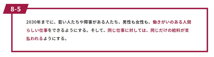 SDGsの目標に定められているところでは目標8のターゲット5で触れられている、障害がある人の雇用・就労の問題です。