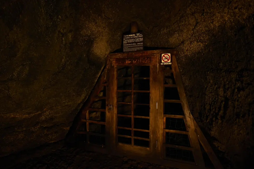 総延長386mの富士山麓のなかでも最大規模の横穴式の洞窟です。鳴沢氷穴や富岳風穴とは違い洞窟内は暖かいため、多数のコウモリの棲息が確認されています。ただし、コウモリがここに居るのは寒い冬の間だけということで、私たちがコウモリに出会うことは滅多にできないようです。