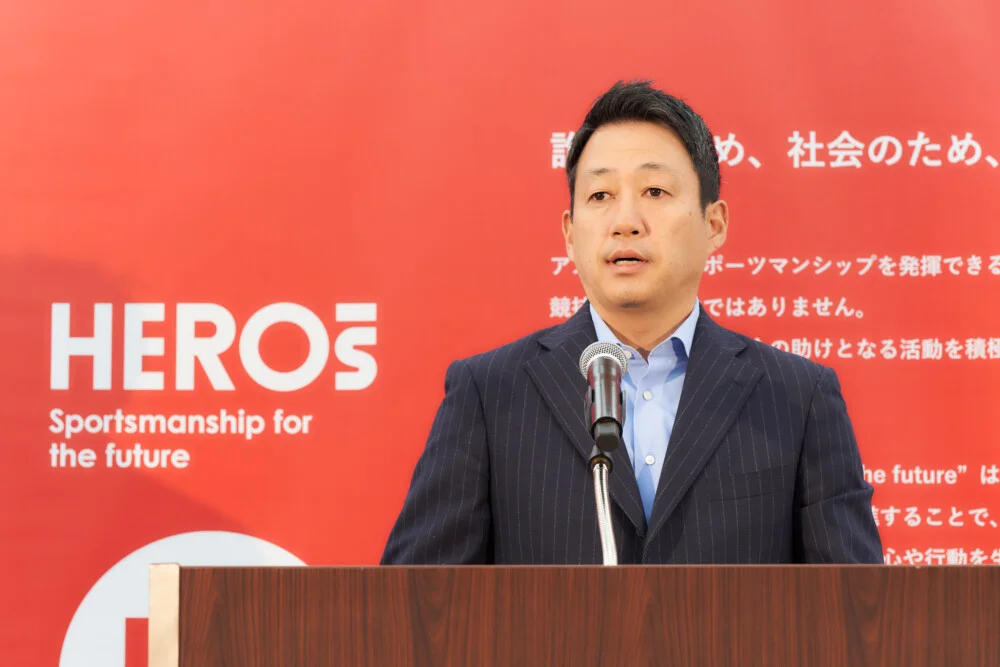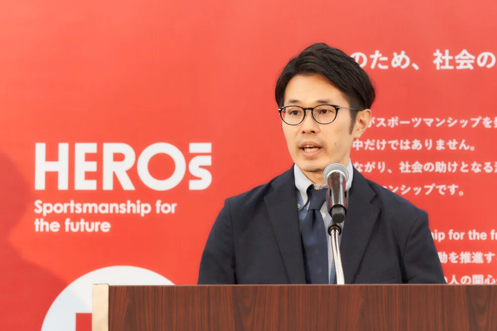 発表会の第一部冒頭、日本財団笹川順平常務理事は「人々が生活しづらい地球になってきている、またスポーツを楽しむ場が奪われている。この原因の一つである気候変動の問題をなんとかしようとアスリートらとともに『HEROs PLEDGE』というプロジェクトとして立ち上げました。アスリート・スポーツが持つ力を活かして社会問題を解決していきたい」と述べました。