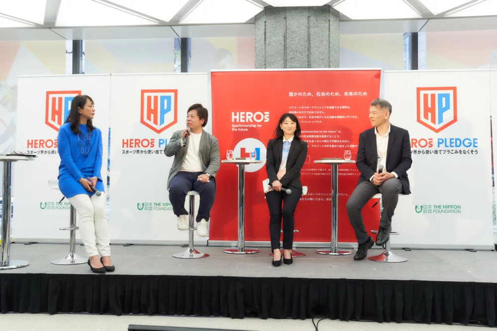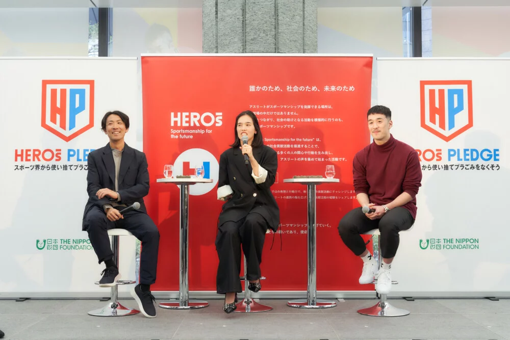 日本財団は3月28日、使い捨てプラスチックごみをスポーツ界横断で削減に取り組む「HEROs PLEDGE」をスタートすると発表しました。同日は日本財団で発表会が開催され、リーダーを務める井本直歩子(競泳)さんや渡部暁斗(スキーノルディック複合)さん、田渡凌(バスケットボール)さんらプロジェクトに参画するスポーツ選手が参加し、今後の取り組みについて紹介しました。