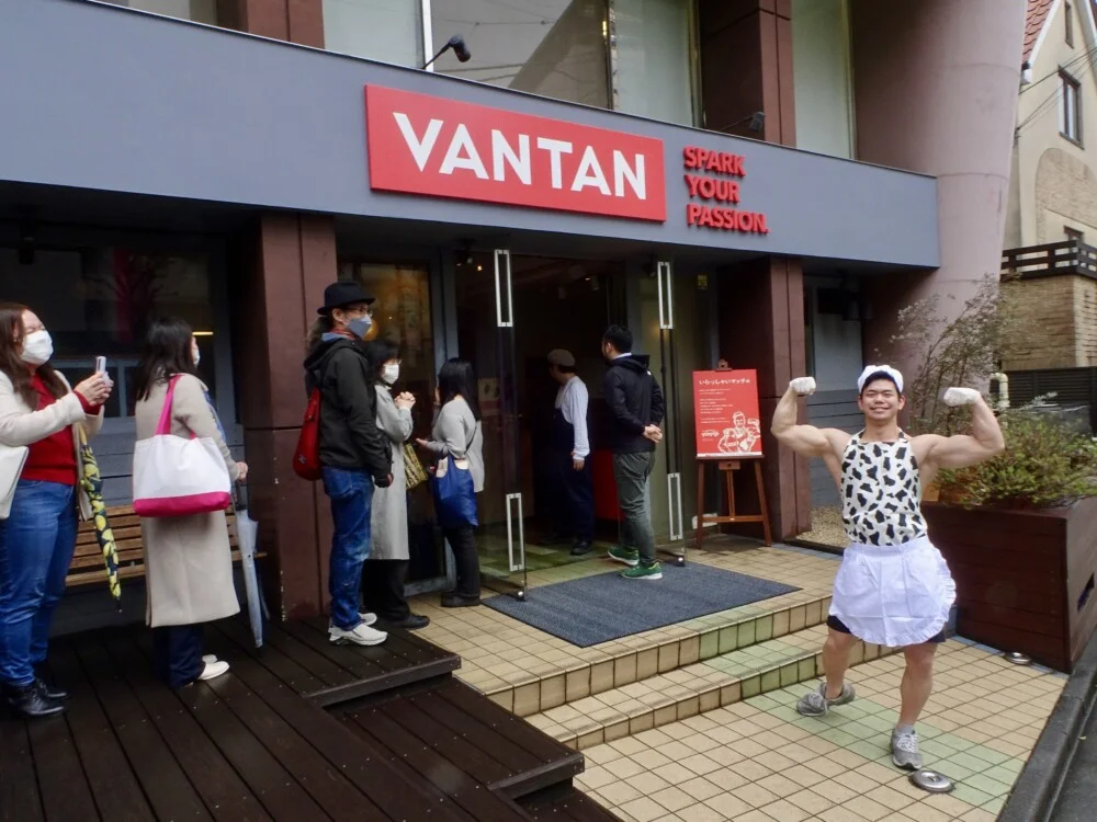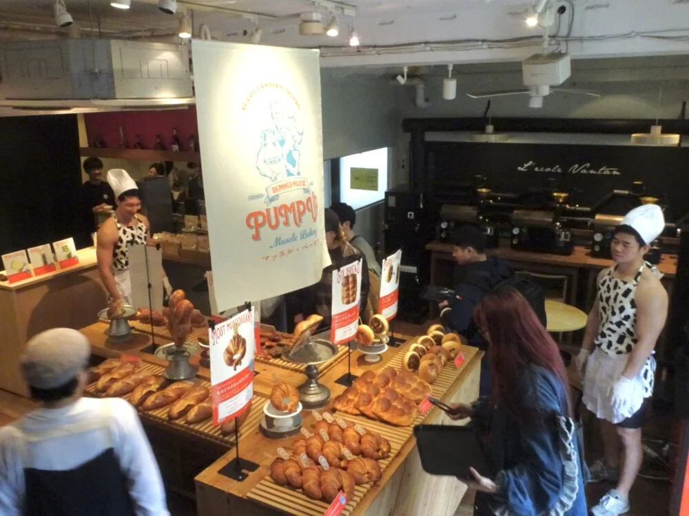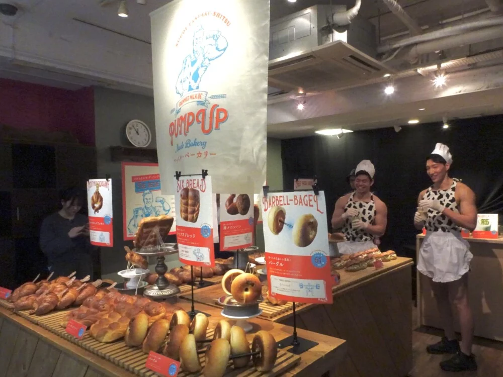 会場となった東京・渋谷区恵比寿のバンタン東京校2号館には、オープン前から行列ができるほどの人気ぶり。ホルスタイン柄のエプロンを身に着けたマッチョ店員が現れると、行列からは歓声が上がります。おいしそうなパンを手に、マッチョと記念撮影するなど、イベントは大きな盛り上がりを見せました。