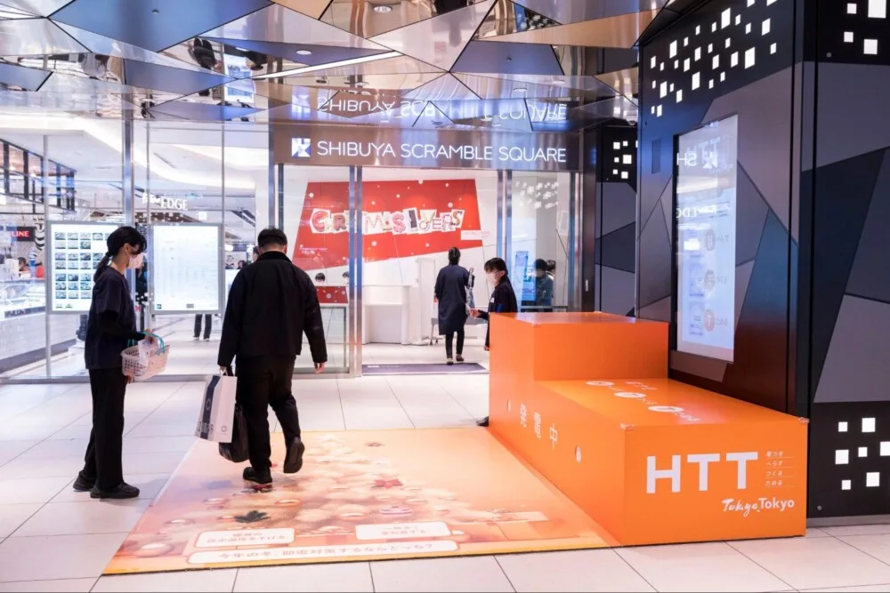 10月24日から11月7日の期間は渋谷スクランブルスクエア地下2階のエントランスに発電床が設置されました。来場者が歩くことで発電される電力をためて、HTTクリスマスツリーが点灯されます。