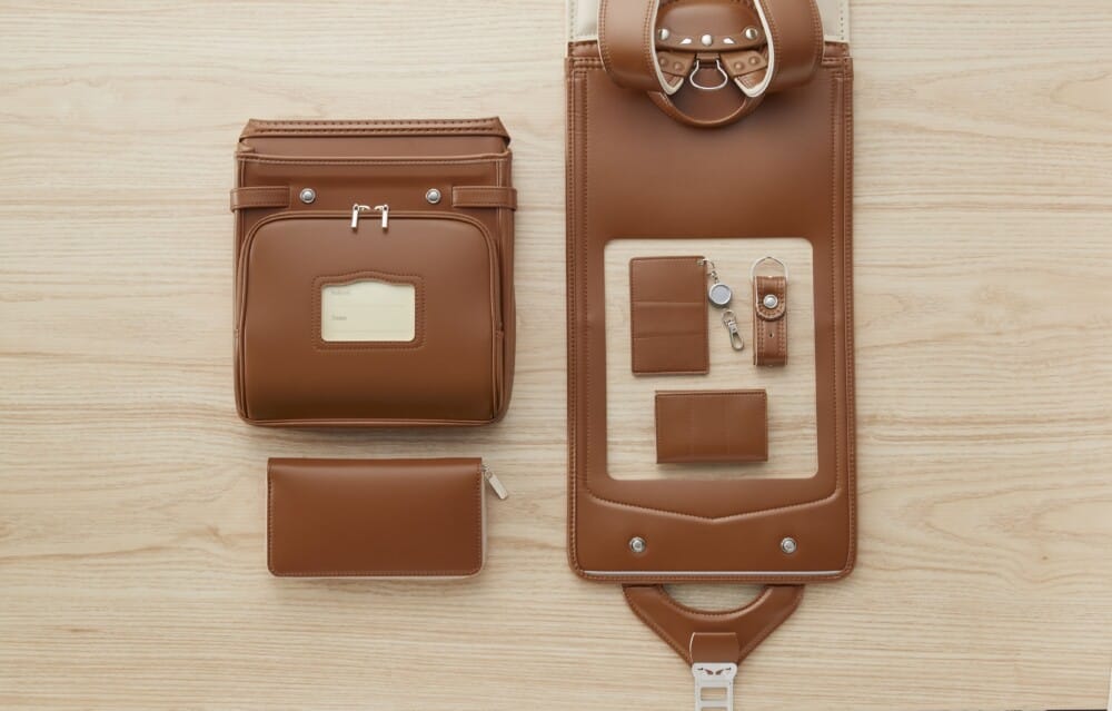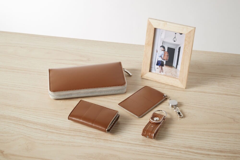 小学校6年間の想い出がいっぱい詰まったランドセルをカタチとして残すにあたっては、“ランドセルと同じように毎日使ってもらいたい”という想いから、長財布、キーケース、パスケース、キーホルダーの4つがセットとなっています。
