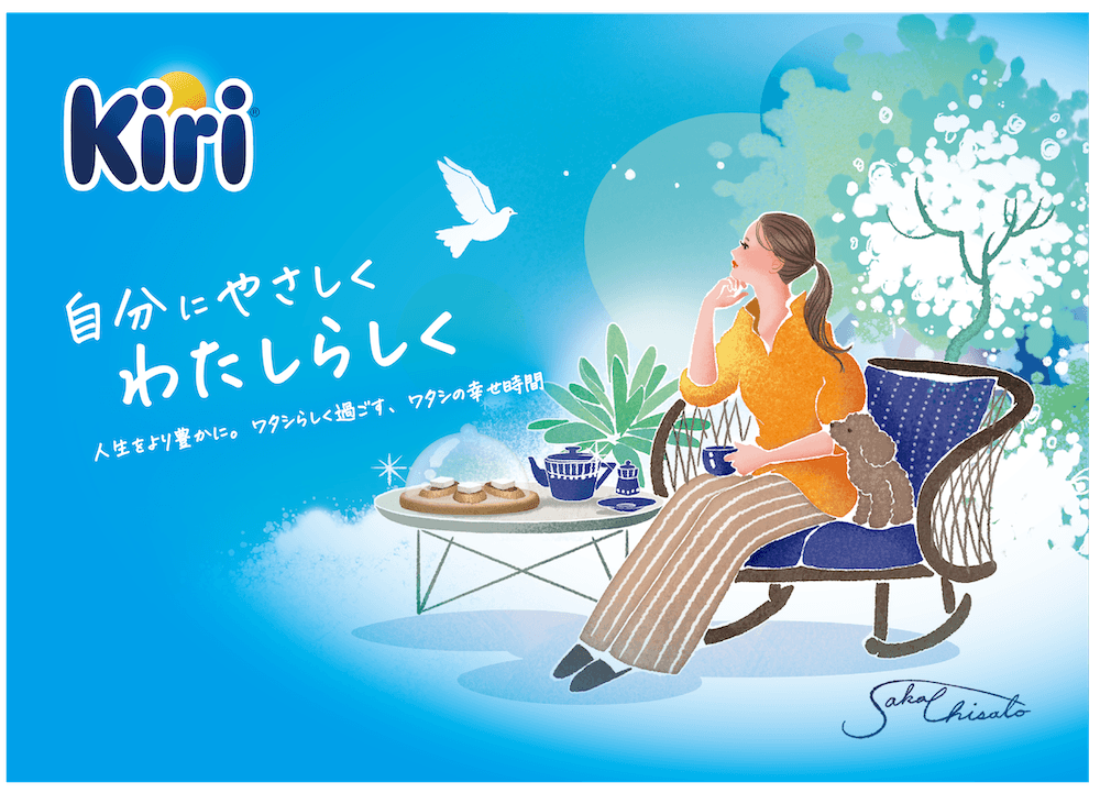 今回展開する特別パッケージは、 “エネルギッシュに輝く人々”をコンセプトにイラストを制作されている、さかちさと氏とコラボレーションし、「人生をより豊かに、ワタシらしく過ごすワタシの幸せ時間」をテーマにした3つのシーンを描いています。「キリ」を手にすることで、それぞれが「自分にやさしい」瞬間を積み重ね、自身を大切にしながら自分らしく過ごすきっかけを提供することを目的としています。