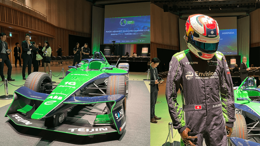 それに関連して、5月14日に東京都の品川インターシティホールで、サーキュラーエコノミーをテーマにした環境啓発イベント「RACE AGAINST CLIMATE CHANGE TOKYO」が行われました。このイベントは、日本の大手化学メーカーである帝人株式会社(以下、帝人)が協賛している「エンビジョン・レーシング・フォーミュラEチーム」を招き、エンビジョン・レーシングの関係者がフォーミュラEの開催理念を、ゲスト企業がサーキュラーな世界の実現に向けた取り組みについてディスカッションを行うというものです。
