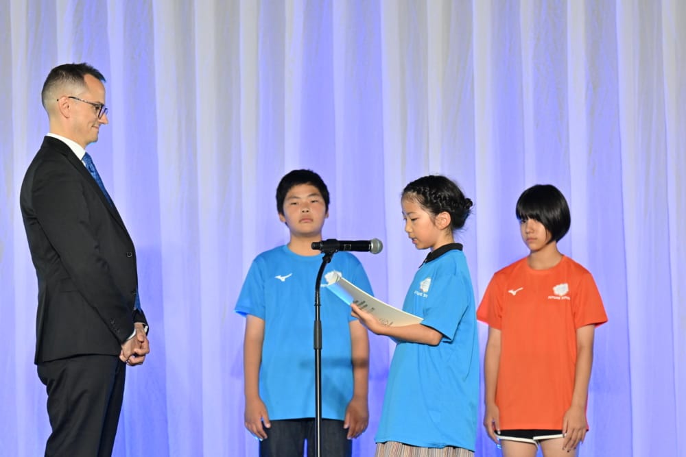 セレモニーでは、「ピースコミュニケーション宣⾔」と題し、⽇本国内および国連国際学校に所属する世界中のこどもたちから募集した「平和へのプロミスメッセージ」を発表。