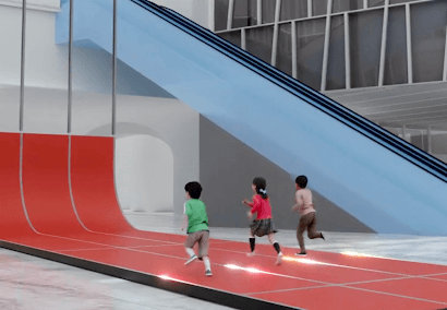 パブリックビューイング会場となるステーションアトリウムには、「TOKYO の光を世界に届ける」をテーマとした全長15m のトラックが登場。400m走さながら、来場者が400cm走を体験すると、その動きに連動してトラックのラインとして設置されたLED が光ります。この光が上へと伸びていき、TOKYOと世界が結ばれる様子を体感することができます。