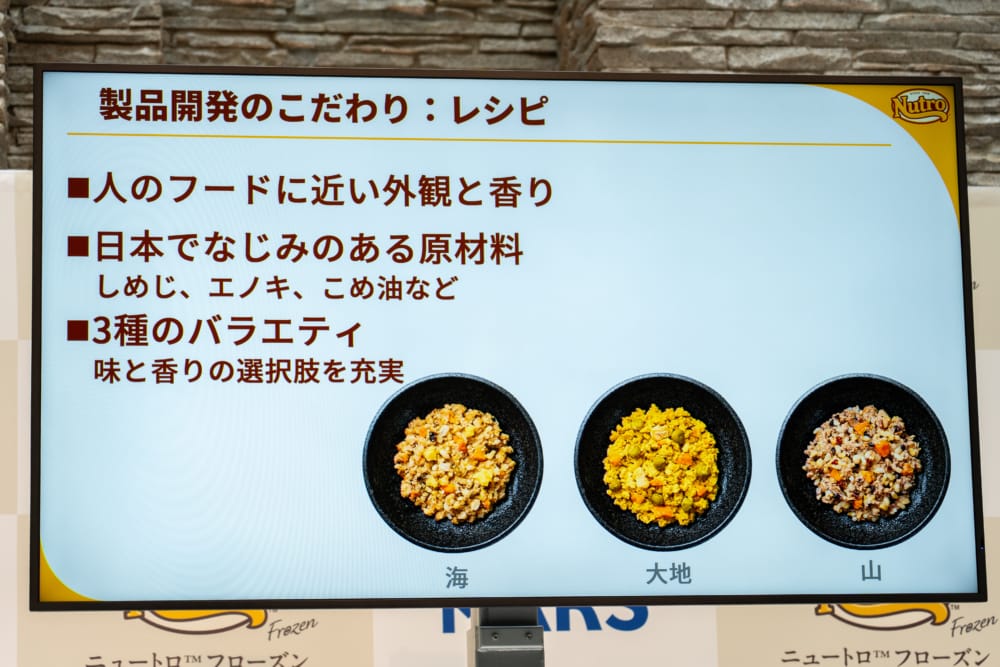 「従来のペットフードの強い匂いもワンちゃんの食欲を高めるのですが、今回は飼い主さんも楽しめる味本来の香りというのも狙っています」(秋元氏)