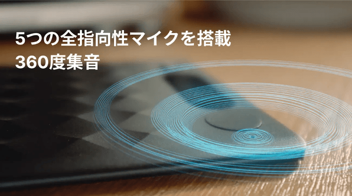 Notta Memoの特長は、臨場感まで記録する⾼⾳質録⾳。4つのMEMSマイクと1つの⾻伝導マイクが搭載されており、周囲の雑⾳を効果的に抑制し、対⾯でもオンラインでも、クリアで臨場感のある⾳声を記録します。