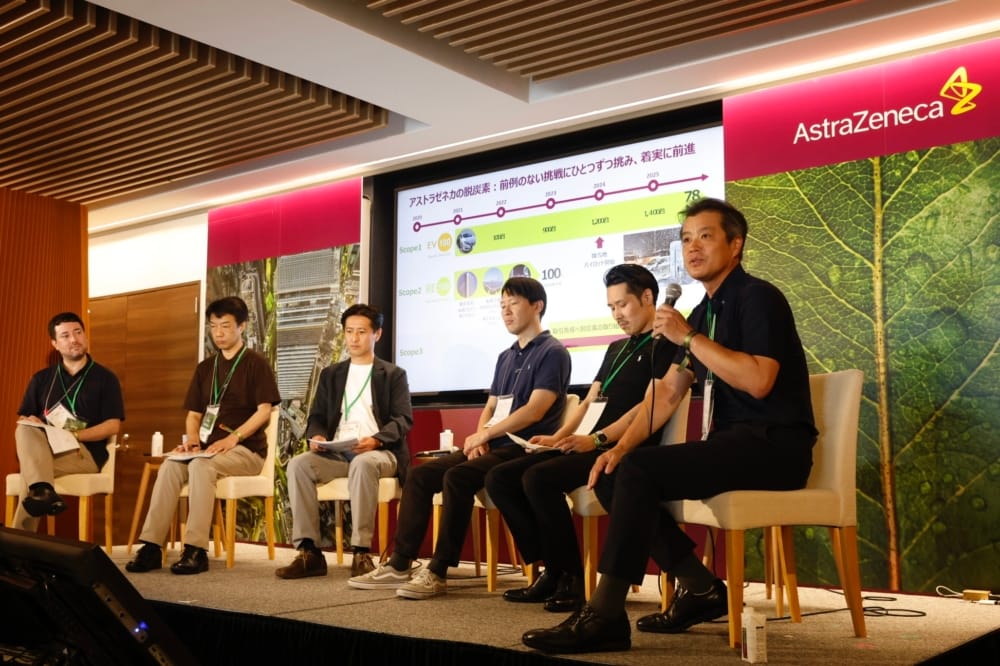 アストラゼネカ株式会社 取締役 執⾏役員 CFOの吉越悦史氏は、社内外の取り組みを「これは冒険だった。鍵は“諦めの悪さ”」と話す。営業車のEV化は豪雪地を含め1600台規模へと広がり、東京・大阪のオフィスはテナント単位の再エネ導入を実現。工場はソーラー電源へ再設計した。難所は、同社もScope3。「相手に動いてもらう」ため、購買が自ら学び、“何を頼むのか”を言語化して説明・依頼を繰り返したという。「一社だけでは1.5℃にインパクトは生まれない。国・企業・業界・世代を越えて“共創”するしかない」と改めて力を込める。