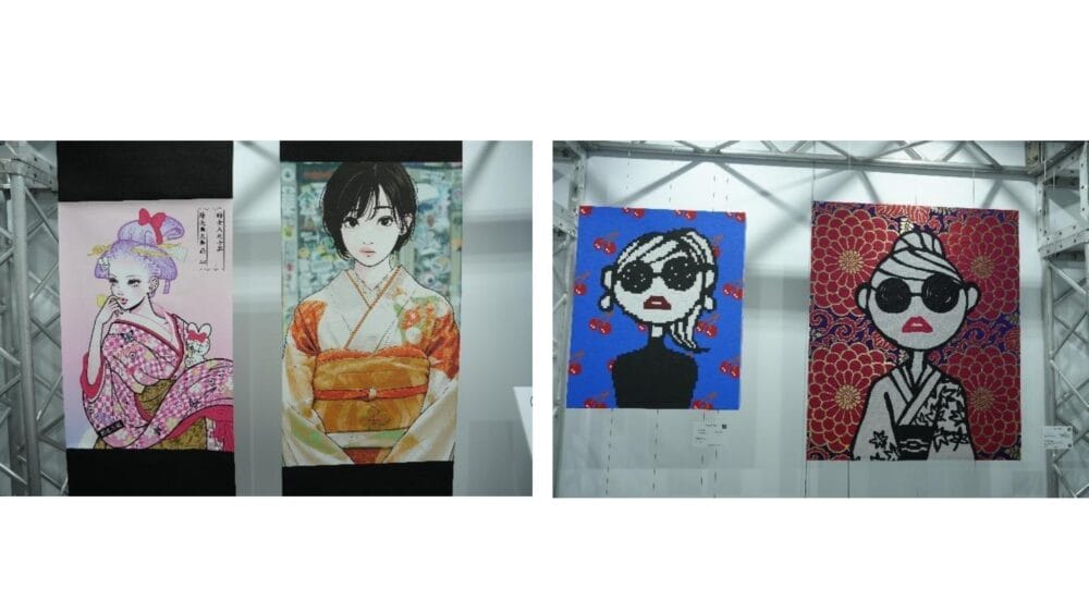 総勢26組のアーティストの作品を観ることができる本芸術祭ですが、その分野は現代アート、日本画、ポップアート、陶芸、写真、木工など多岐にわたります。なかでも注目作品のひとつが、友禅染職人・永澤翔子氏と日本画家・板垣夏樹氏のコラボレーション作品『猿亀酔戯画』です。