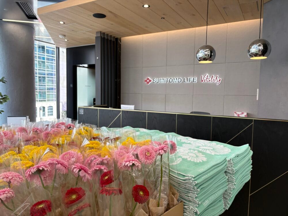住友生命「Vitality」プラザ銀座Flagship店が表現している世界観とは?それを紐解くためには、健康増進型保険 住友生命「Vitality」について押さえておきたいところです。改めて、健康増進型保険 住友生命「Vitality」は、2018年7月より販売されている健康増進プログラムのこと。加入者は毎週設定される運動目標を達成するとドリンク引換やポイント(1円単位でアマギフ等に交換可能)等の金銭メリットが受けられます。継続のしやすさやお得感が魅力で、現在では、世界41カ国・地域で4200万人が加入しているそう。日本でも200万件を突破しているのだとか。人生100年時代と言われる健康長寿社会の今だからこそ、健康増進に寄与する商品性が好評に。販売開始から7年が経過した今もなお、アップデートを続けているようです。