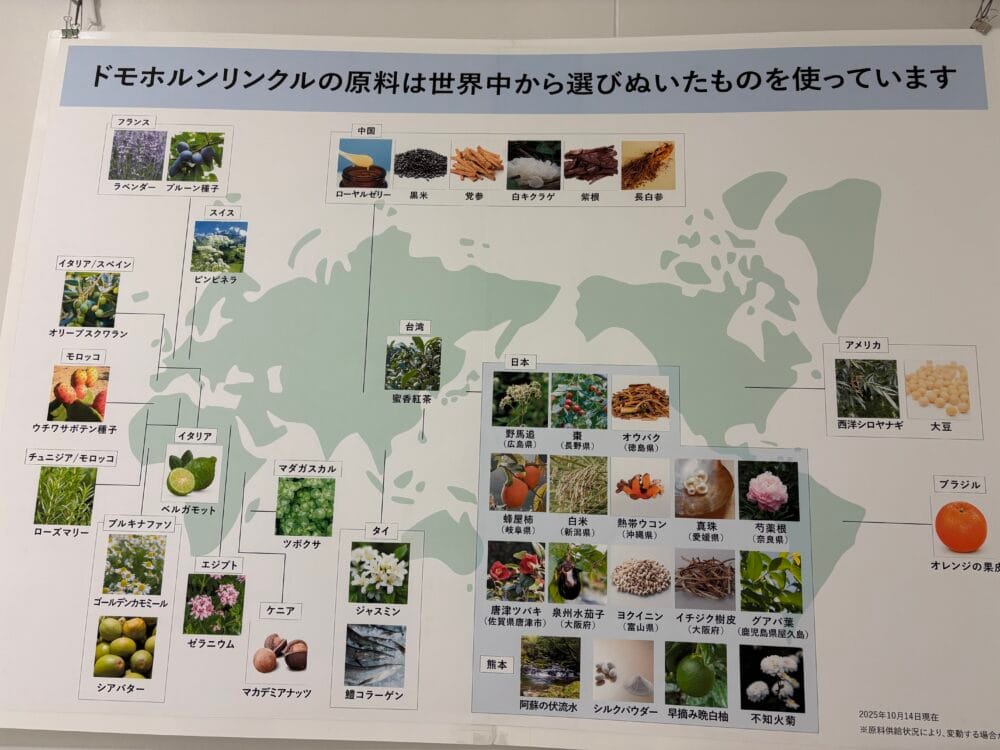 ドモホルンリンクルに使われる唐津ツバキ油、パーム油、山鹿有機シルクパウダー、発酵マルチプルコラーゲンは、「無駄を価値へと再生する」という再春館製薬所のアップサイクル哲学を象徴する素材です。単なる美容効果にとどまらず、地域社会の活性化や環境保全にもつながる“循環型の原料”として活用されています。