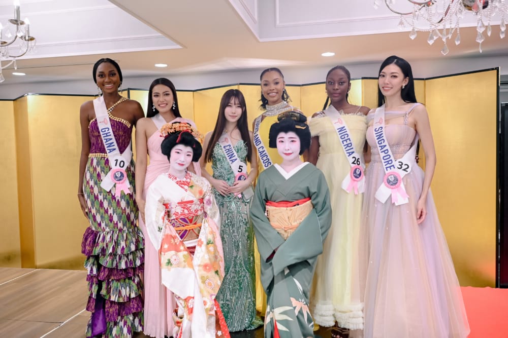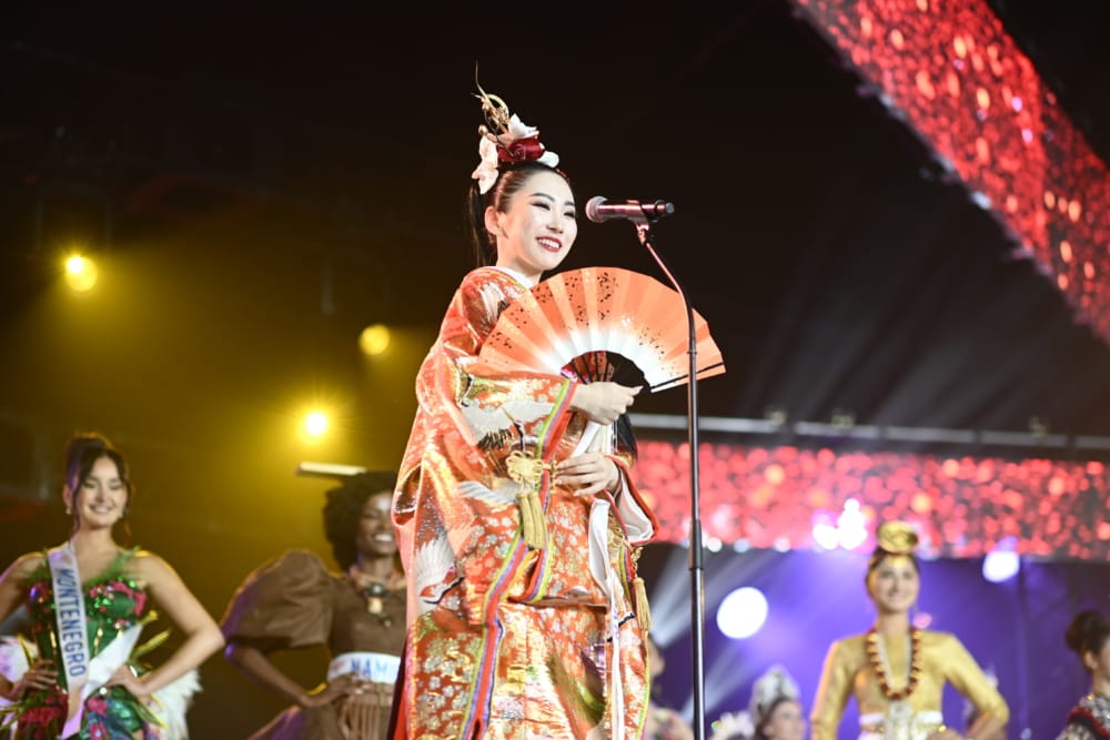 日本代表の能﨑愛さんは伝統的な「着物」で気品ある美しさを演出。