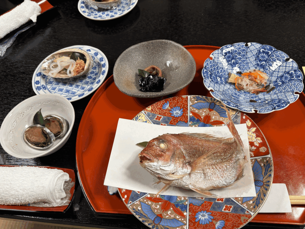 そんな御師料理を今も提供しているのが「料理旅館おく文」です。実際にいただいた御師料理は、「丸岡宗大夫邸」から出てきた古文書に書いてある献立を再現した享保4年(1719年)の料理です。神饌(しんせん)と呼ばれる神様への食べ物が多く使われており、鮫を干した「さめのたれ」や、江戸時代では最も貴重な食材だった「鮑」など、合計で5つの膳を味わうことができます。鮑は伊勢地方では妊娠中の女性が鮑を食べる風習も残っており、“目のキレイな子が産まれる”と言われています。こうした食材一つ一つにも、信仰や地域文化が深く結びついていました。5つのお膳に一つずつ吸い物がついています。5回お吸い物はついており、長い時間をかけてながら味わっていたそうです。