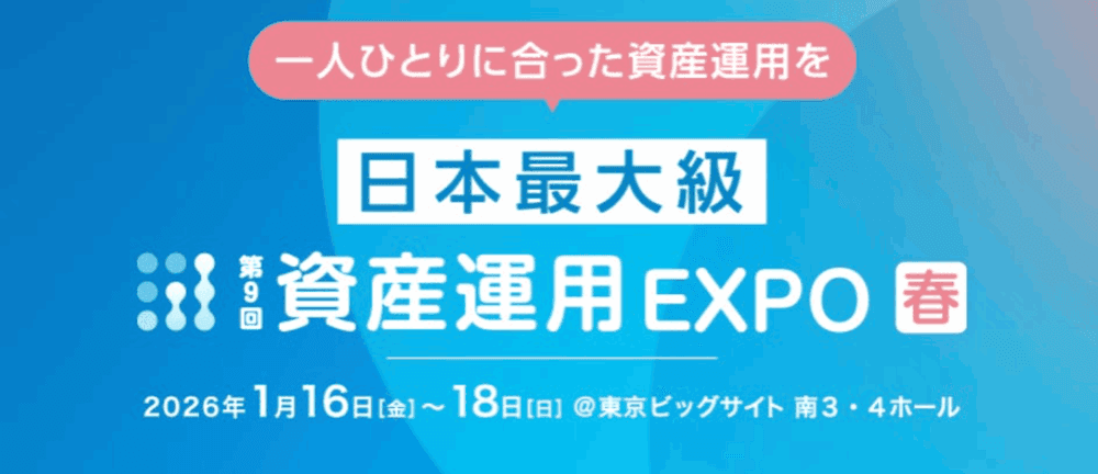 「第9回 資産運用EXPO【春】」は、日本最大級の“お金”の総合イベントです。2024年の新NISA開始から2年が経過し、「資産所得倍増プラン」のもとで個人投資家層は着実に拡大。NISAで投資デビューした若年層にとっての「次の選択肢」となる多様な運用商品が一堂に集結します。