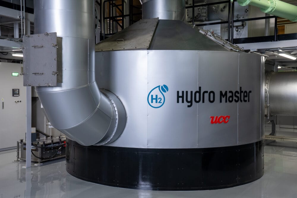 そして、構想から3年半の歳月を経て、UCCが開発した大型水素焙煎機「ハイドロマスター」にて、2025年4月から水素焙煎コーヒーの量産を世界で初めて開始しました※。使用する水素は山梨県から調達したグリーン水素です。