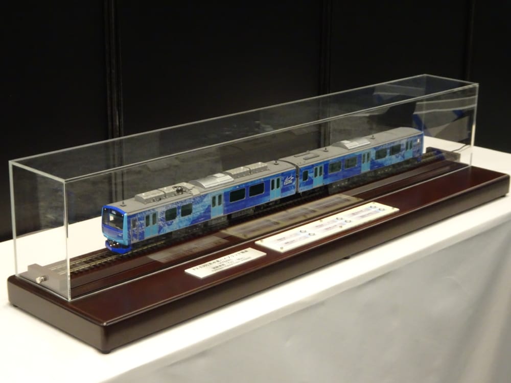 展示エリアで人目を引いたのは、水素社会の「今」を象徴する実機や模型の数々です。トヨタ自動車の水素燃料電池車の実物大モデルをはじめ、試験走行が進む、JR東日本の水素ハイブリッド電車「HIBARI」の模型、さらにはFCフォークリフトや、燃料電池自動車(FCV)やFCトラックに安全・高速に高圧水素を充填する装置である水素ディスペンサーなど屋内外の会場に並び、足を止めて興味深く見学する来場者がたくさんいました。