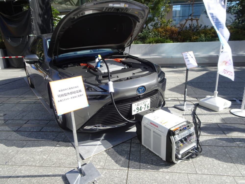 また、水素の力は「もしも」の時にも頼りになります。移動が可能な牽引式水素発電装置の展示や、車から取り出した電気でヒーターを動かして屋外会場を温めるデモンストレーションを実施。災害時の非常用電源としての有用性も、身をもって体感できる内容となっていました。