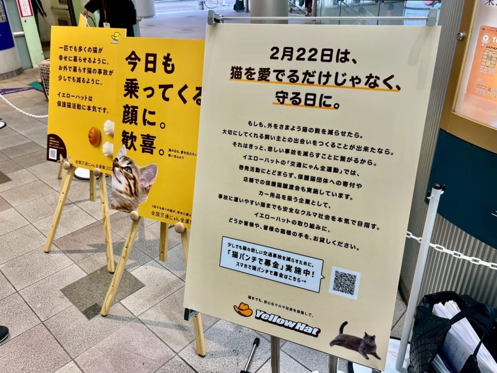 今、年間22万頭以上の猫が交通事故で命を落としているという現実があります。こうした背景を受け、カー用品店・イエローハットが、2月16日から23日までWEBとリアルイベントを通じて参加できる「猫パンチで募金」を実施しました。