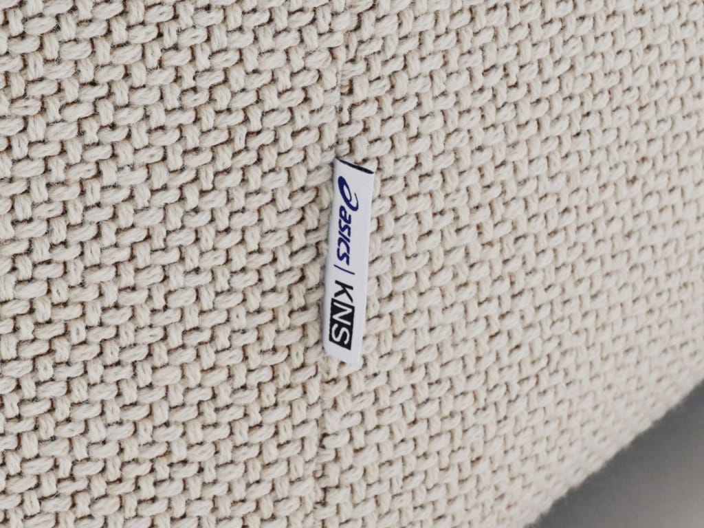 アシックスの粉砕材料が持つ可能性は、もはやスニーカーの中だけにとどまりません 。カリモク家具との協業により、粉砕材料がソファの座面にも採用されました。