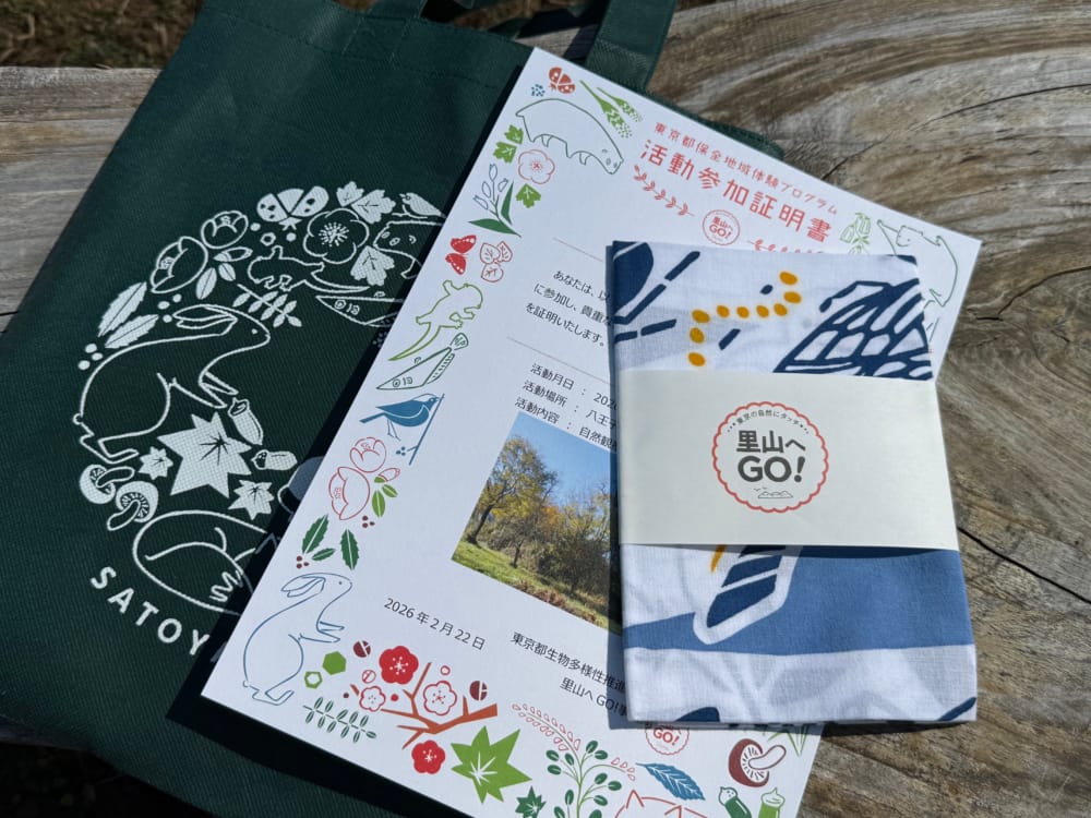 活動の最後には「保全地域体験プログラム活動参加証明書」と、オリジナルの「手ぬぐい」のギフトが渡されました。