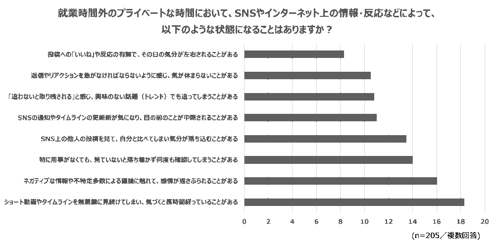 仕事における切り替えのみに限らず、SNSやインターネットが⽣活の⼀部となったことにより、便利さとは裏腹に多くの人が⼼の疲れを感じていることも明らかとなりました。