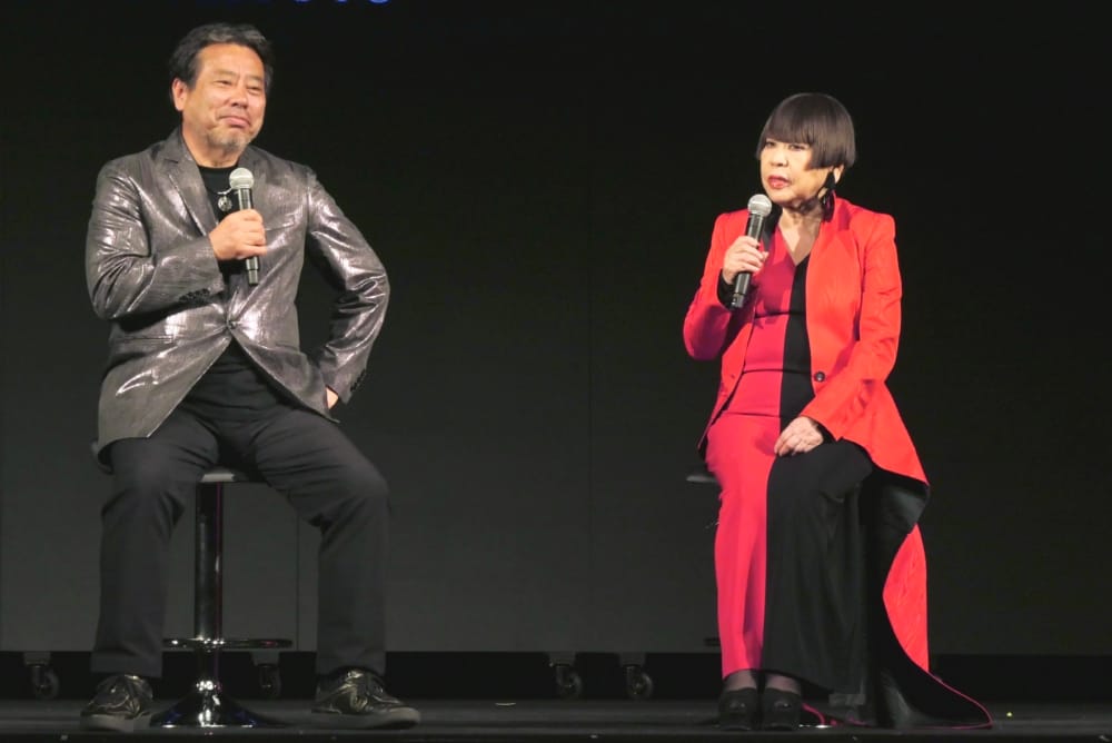 トークセッションでは、TAOエンターテインメントの藤高郁夫代表取締役社長と、長年同集団の衣装デザインを手がけるデザイナーのコシノジュンコ氏が登壇しました。